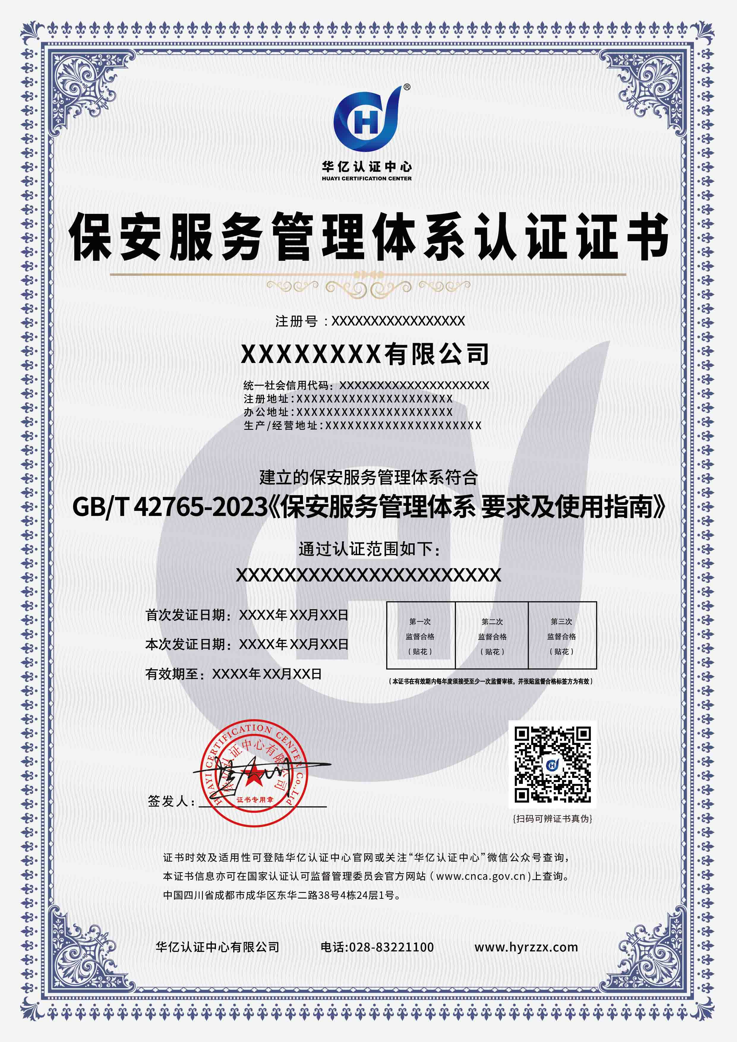 保安服务管理体系认证证书